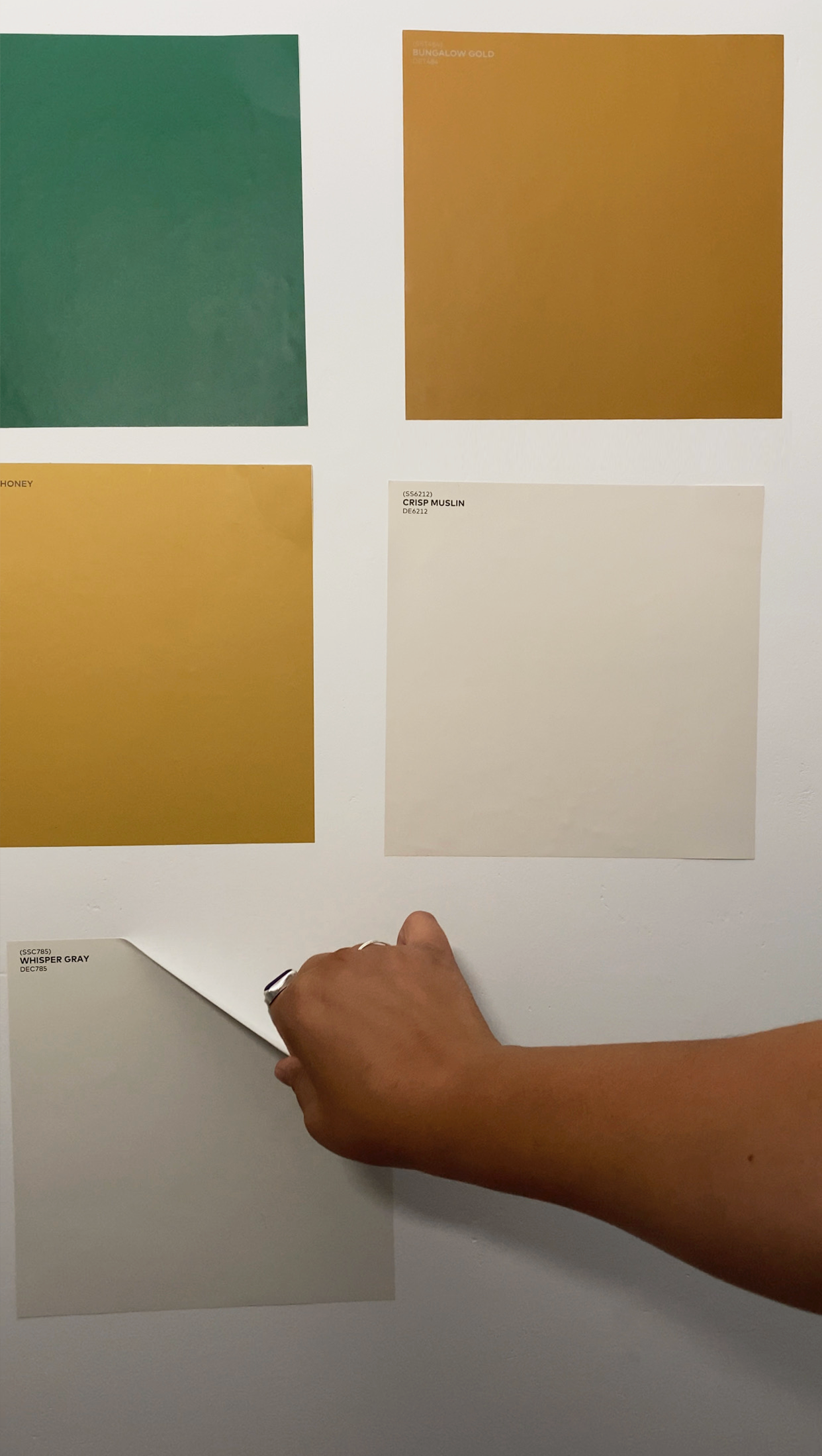 Within a few days, peel and stick samples arrived and I was able to stick the samples throughout the room to confirm everything looks great in the space. Because I planned to include multiple colors on each wall, it was important to keep all colors on the warmer side, to ensure they looked great together.