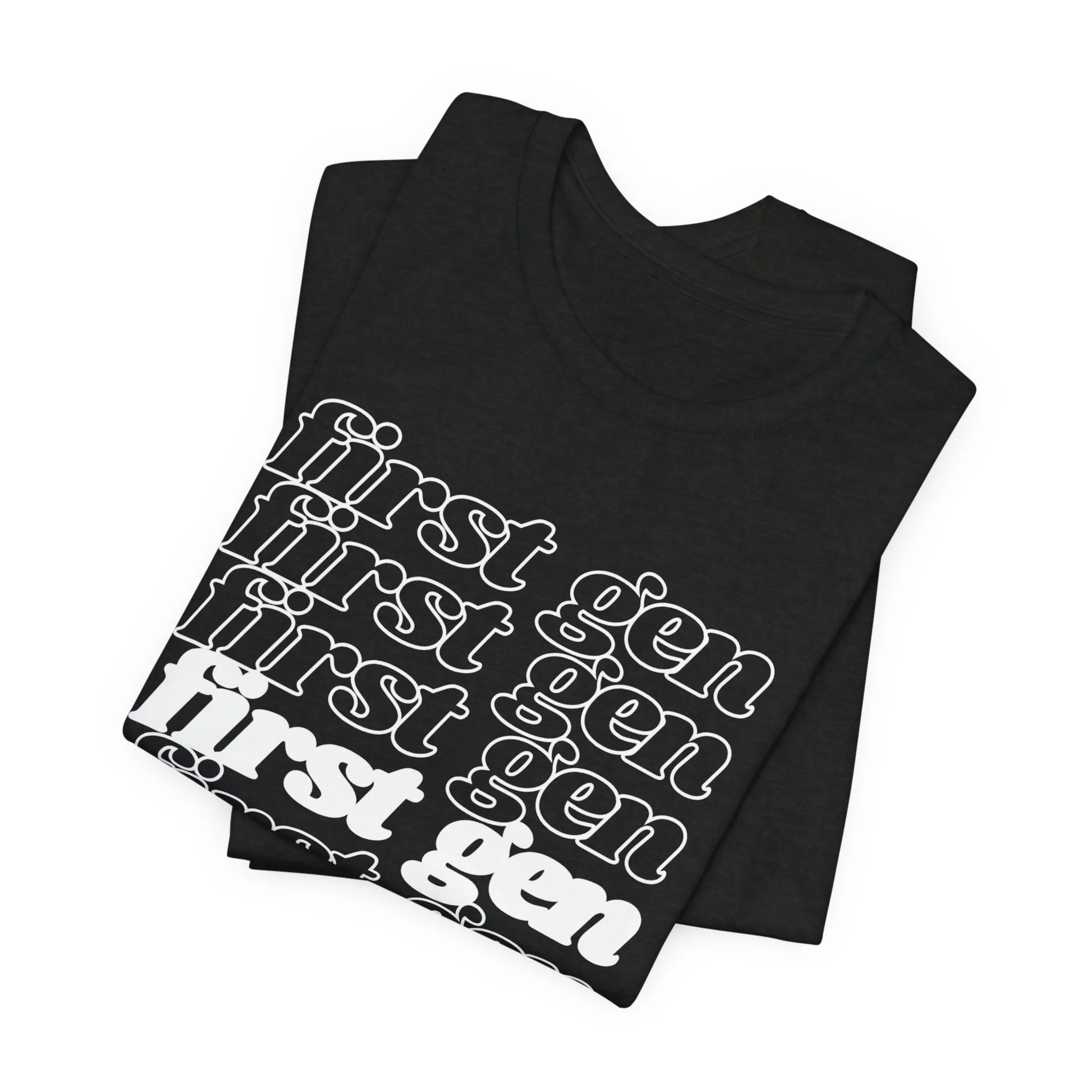 A little declaration of first generation pride. This classic unisex jersey short sleeve tee fits like a well-loved favorite. For a slightly looser fit, I recommend sizing up. Soft cotton and quality print will make you reach for this tee first. These t-shirts have-ribbed knit collars to bolster shaping. The shoulders are tapered for a better fit over time. Dual side seams hold the garment's shape for longer.